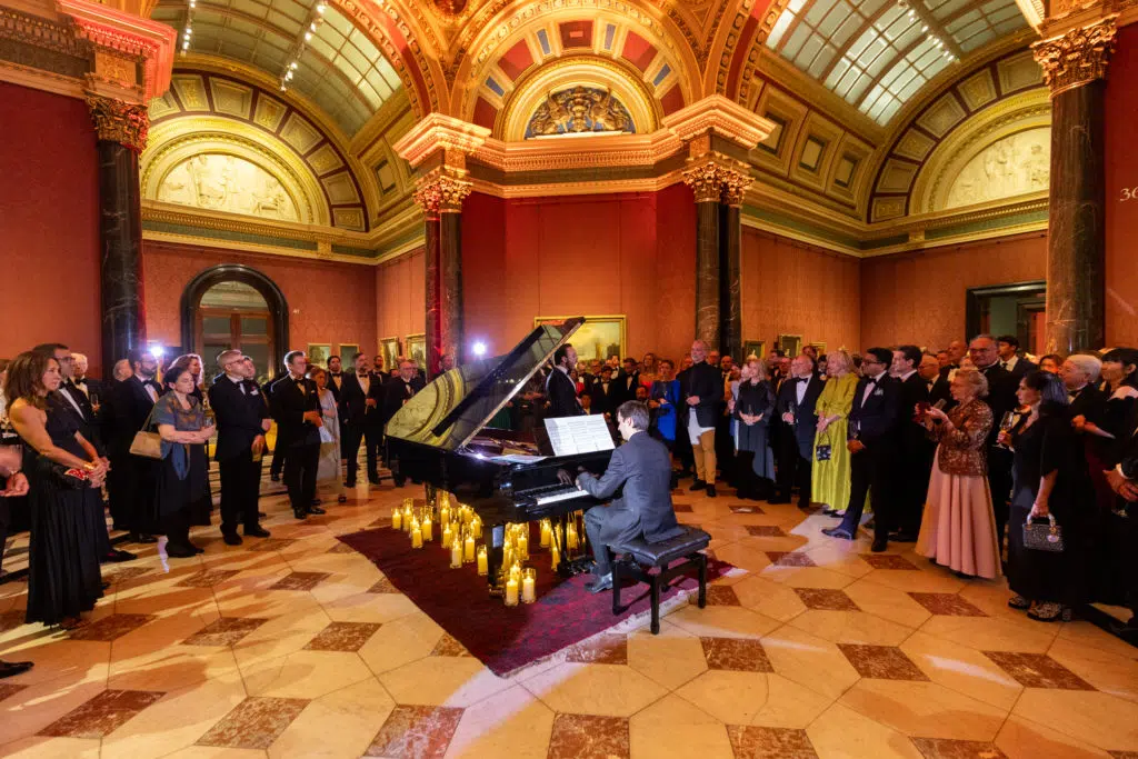 Parmi les trente tables dressées dans une magnifique galerie du musée, la Fondation CNRS a eu le plaisir d’accueillir à sa table Frédéric Thibault-Starzyk, Président du Conseil stratégique de la Fondation pour la MFO, Stéphane Van Damme, Directeur de la MFO, Diogo Martins, Directeur de cabinet du Directeur du Wellcome Trust, Roger Reed, Professeur en sciences de matériaux à l’université d’Oxford et Fellow Ambassador 2025 du CNRS, Bing Ye, artiste photographe qui a fait dons de quelques œuvres pour la MFO, Elliot Queisser de Stockalper, Doctorant à l’Université d’oxford et entrepreneur, et Patrick Nédellec, Conseiller scientifique à l’Ambassade de France. Les invités du Gala ont pu faire preuve de générosité au cours d’enchères silencieuses pour lesquelles la MFO a proposé plusieurs cadeaux : une invitation à visiter la MFO suivie d’un diner traditionnel dans un des collèges de l’Université d’Oxford, une découverte des laboratoires du CNRS en région parisienne, une série de photos réalisée par l’artiste photographe Bing Ye. Les fonds recueillis seront directement reversés au bénéfice de la MFO.